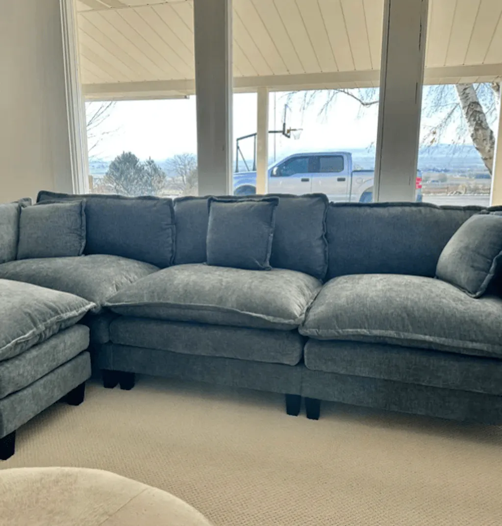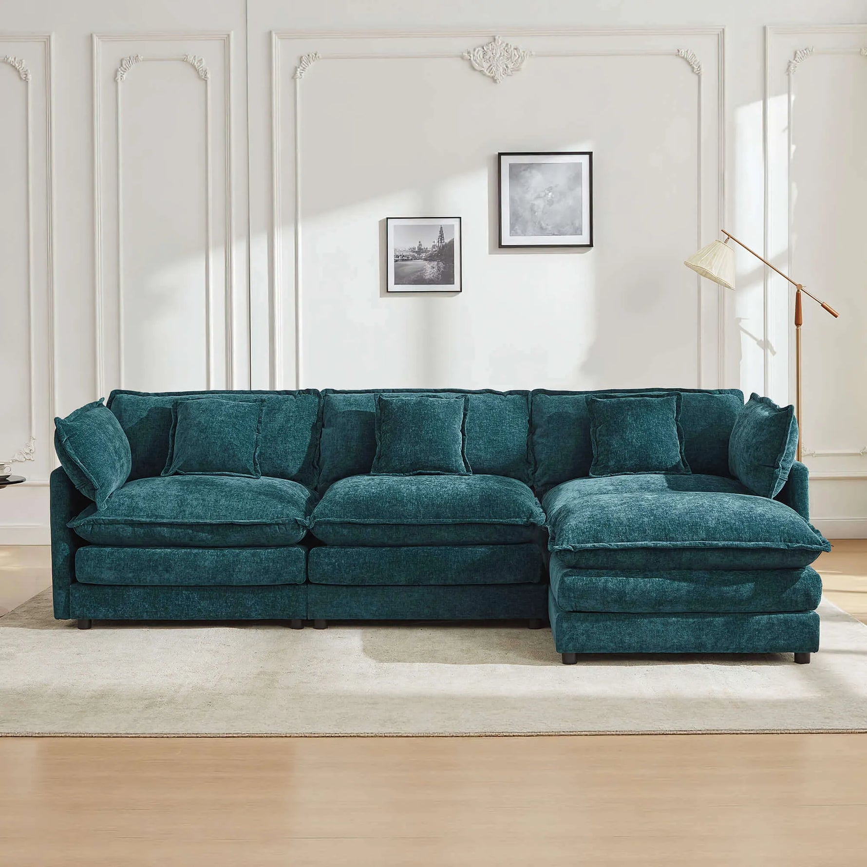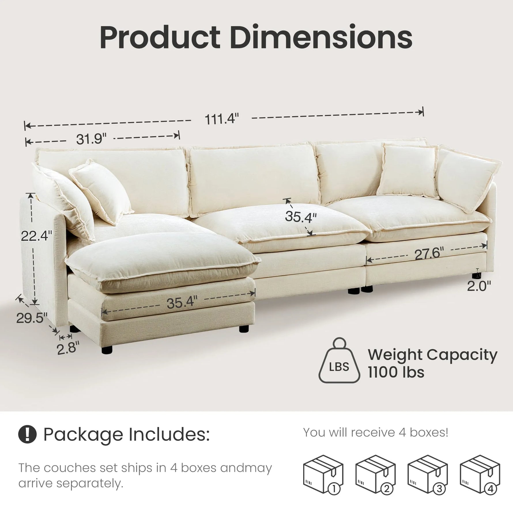 Modular 3-Seat Deep Seat Sectional Sofa with Ottoman
