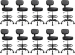 Drafting Chair with Backrest – Adjustable Foot Rest Rolling Stool with Wheels, PU Leather Swivel Stool for Office Spa Studio Lab Counter Salon Home Work Bar Kitchen Shop(Black), Pack of 10