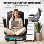 Primy Ergonomic Office Chair with Adjustable Air Lumbar, Home Desk Computer Chair, Leather High-Back Executive Chairs with Flip-Up Arms, Rocking Swivel Comfort