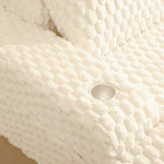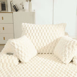 The sofa is made of high-quality corduroy faux fur, offering a soft, plush texture. The cushions are filled with high-density foam for superior comfort and support