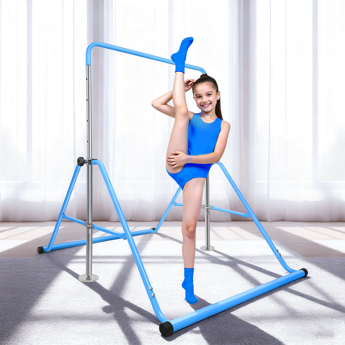 【 FOLDABLE & SPACE-SAVING】 Designed for convenience, the gymnastics bar folds in seconds—just pull the side levers to collapse it. Compact storage makes it ideal for homes with limited space, saving both time and room when not in use.
