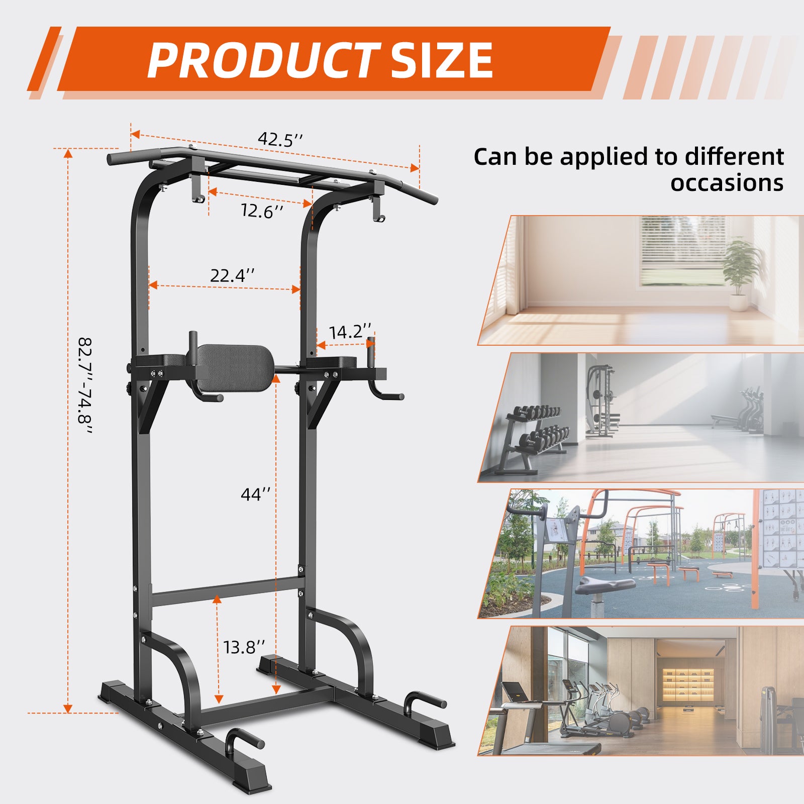 👍【Premium Heavy-Duty Construction】Built with a thick steel frame, high-density foam grips, and non-slip nuts, this power tower ensures stability and safety during intense workouts. The reinforced structure prevents loosening, even with vigorous movement.