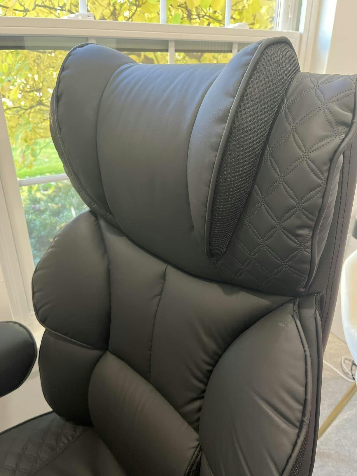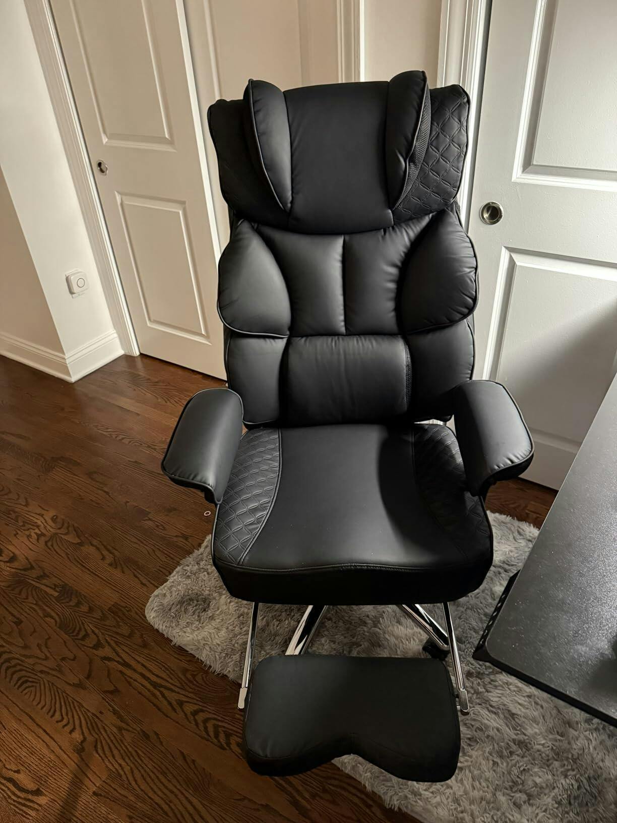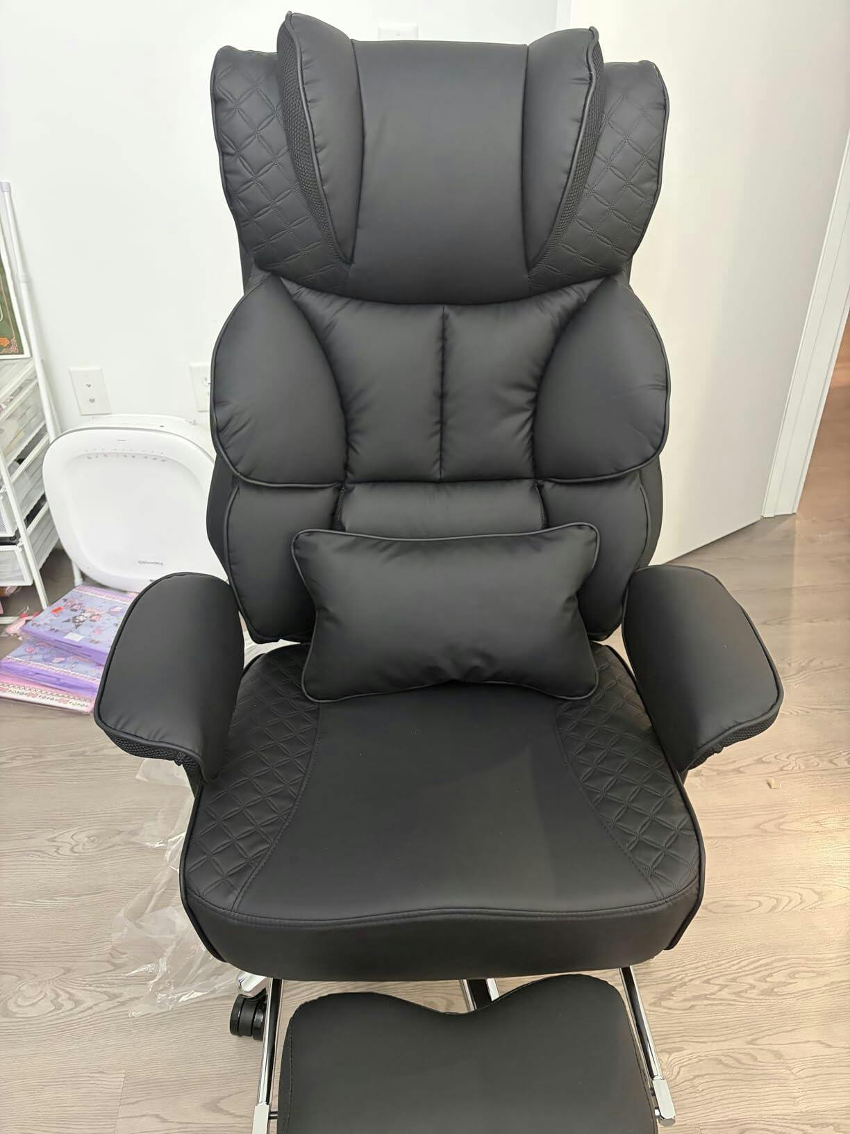 I’m very happy with this chair! The design looks great and the leather feels soft and premium. It’s super comfortable to sit on, with excellent back and lumbar support — perfect for long hours of work or gaming. The footrest is a nice bonus and makes it easy to relax during breaks. Assembly was simple and only took one person. Overall, great quality and value for the price. Highly recommend!
